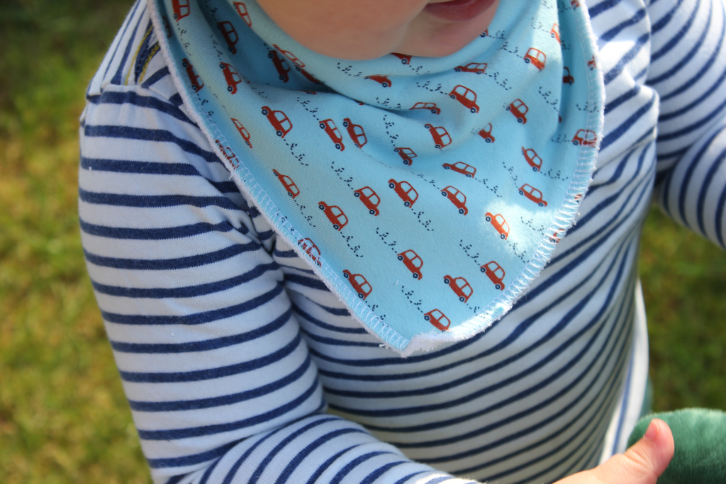 Dribble bibs are essential for most babies and toddlers, they protect clothing and frequent changes prevent dribble rashes. I found the bibs from shops were quite small for my 18 month old, and I also wanted to be able to coordinate the bib with the outfit he was wearing. So I designed this pattern. This is the ideal project for a beginner. I made mine on an overlocker, so if you’re new to using an overlocker this would be ideal for you too.